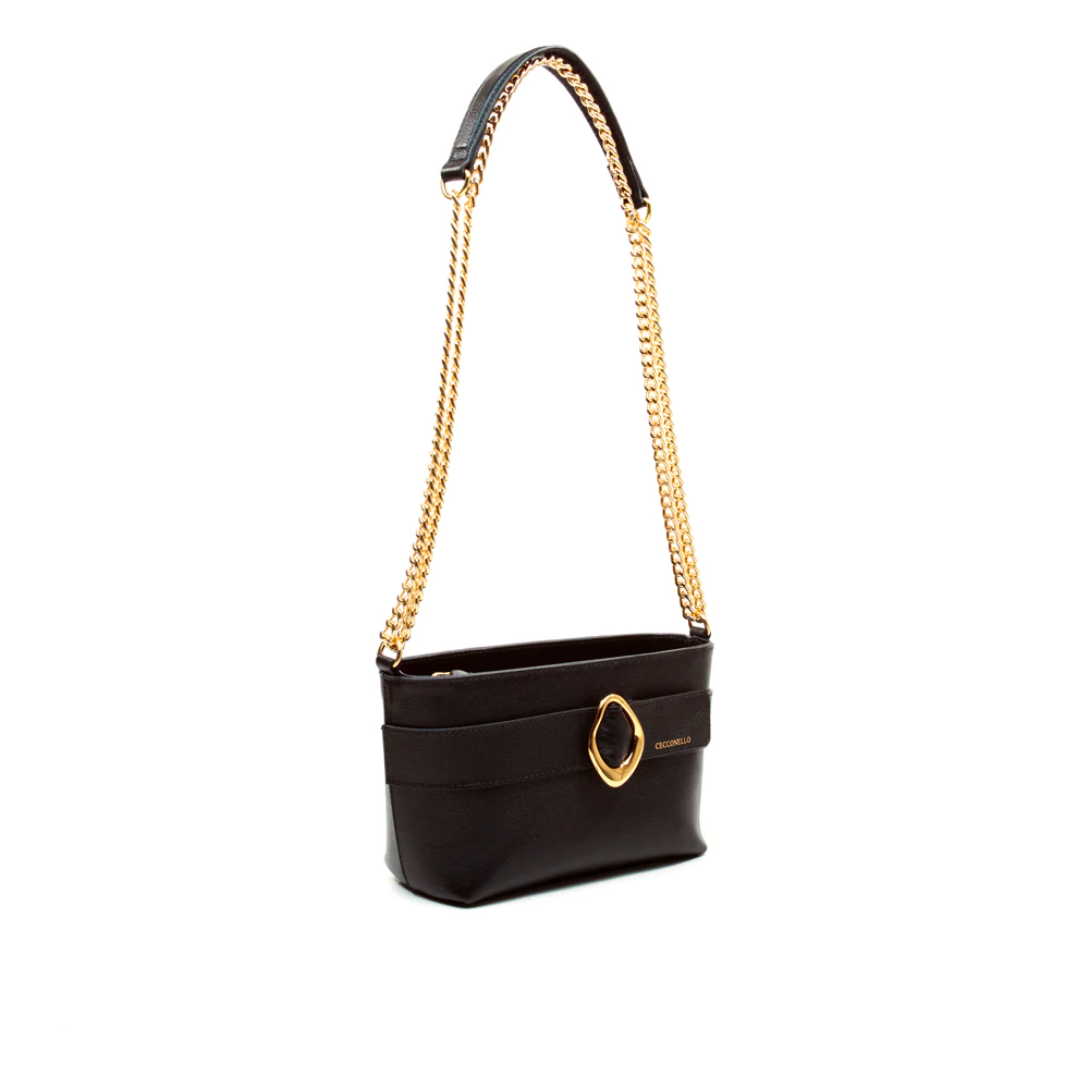 sofisticada e versátil, a bolsa alba da cecconello é confeccionada em couro de alta qualidade, combinando elegância atemporal com funcionalidade. seu design estruturado apresenta uma alça de corrente refinada, que pode ser usada no ombro ou na opção transversal para maior praticidade. o compartimento único, com fechamento por zíper, oferece espaço ideal para os itens essenciais, enquanto o bolsinho interno e o porta-cartões garantem organização extra. o destaque fica por conta do adorno em tiras com passador dourado, um detalhe que adiciona um toque de requinte ao modelo. perfeita para complementar looks sofisticados do dia à noite.