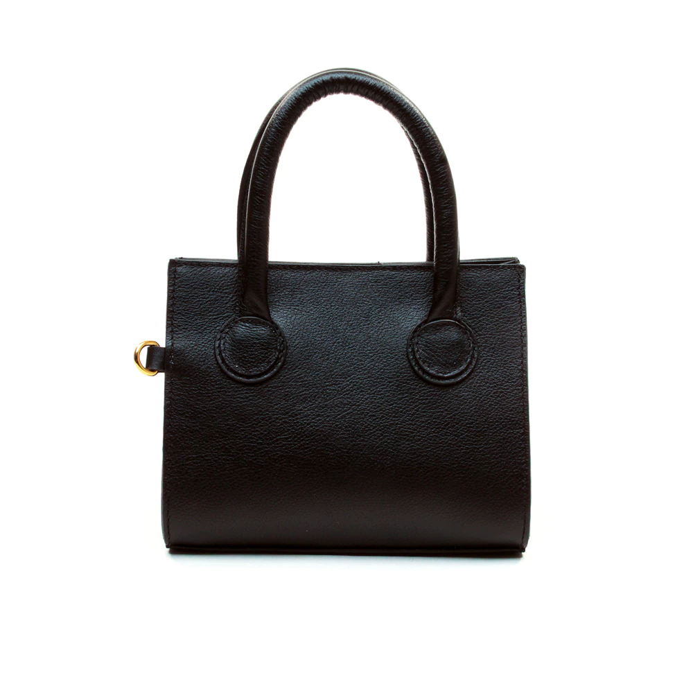 elegância em versão compacta. esta tote bag em couro premium combina sofisticação e praticidade em um design estruturado de linhas retas. suas alças de mão garantem um toque clássico, enquanto o adorno de topê, confeccionado com tiras meia-cana e ponteira dourada, adiciona um detalhe refinado. de tamanho compacto, seu interior é funcional, contando com um compartimento único, porta-cartões e um bolsinho para pequenos itens. acompanha uma alça removível, permitindo seu uso no ombro ou na transversal, ideal para quem busca versatilidade sem abrir mão do estilo.