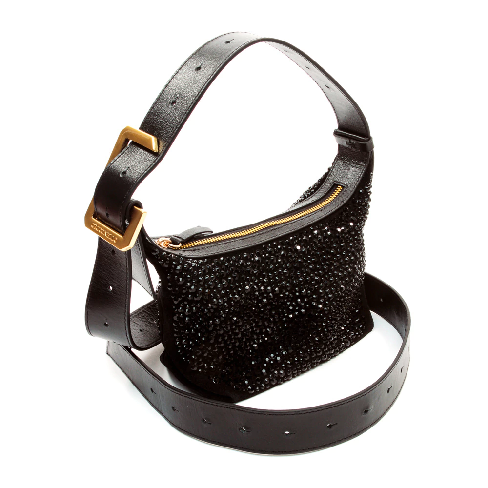 handle bag confeccionada em couro, com um design sofisticado e moderno que acompanha as tendências da moda. seu corpo inteiramente cravejado de cristais adiciona brilho e elegância, tornando-a uma peça única e marcante. a alça larga com uma fivela estilizada envolve a bolsa e oferece versatilidade, permitindo ajustá-la para uso como alça transversal. o interior conta com um bolso funcional e forro personalizado, combinando praticidade e requinte. ideal para quem busca um acessório que alia estilo e exclusividade em qualquer ocasião.