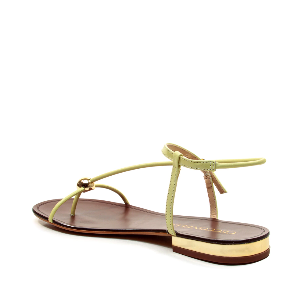 minimalismo e sofisticação caminham lado a lado nesta sandália rasteira em tom pastel. o modelo apresenta tiras finas que abraçam delicadamente o pé, com aplicação de esfera metálica dourada que adiciona um ponto de brilho elegante. o solado em tom amadeirado com detalhe dourado no calcanhar complementa o design com um toque refinado. versátil e confortável, é ideal para acompanhar produções urbanas e frescas — do look de verão à composição chic de final de semana.