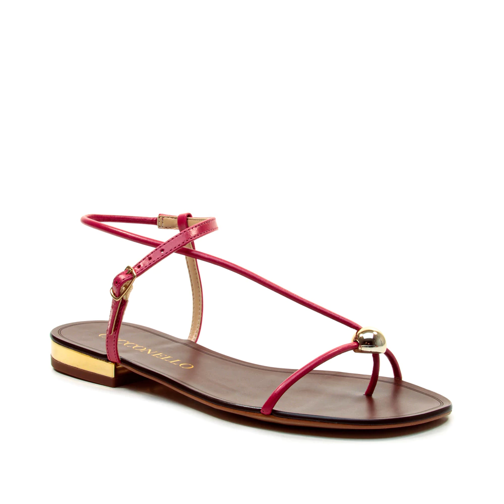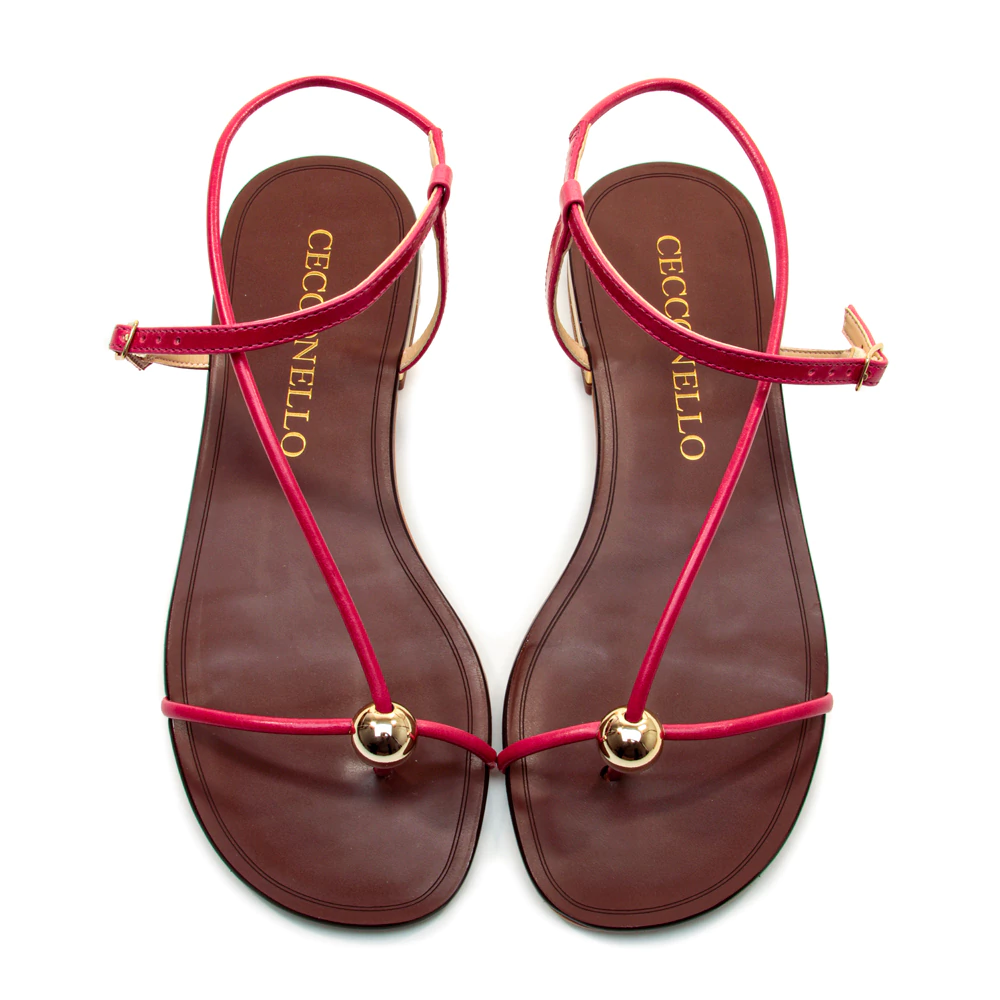 minimalismo e sofisticação caminham lado a lado nesta sandália rasteira em couro. o modelo apresenta tiras finas que abraçam delicadamente o pé, com aplicação de esfera metálica dourada que adiciona um ponto de brilho elegante. o solado em tom amadeirado com detalhe dourado no calcanhar complementa o design com um toque refinado. versátil e confortável, é ideal para acompanhar produções urbanas e frescas — do look de verão à composição chic de final de semana.