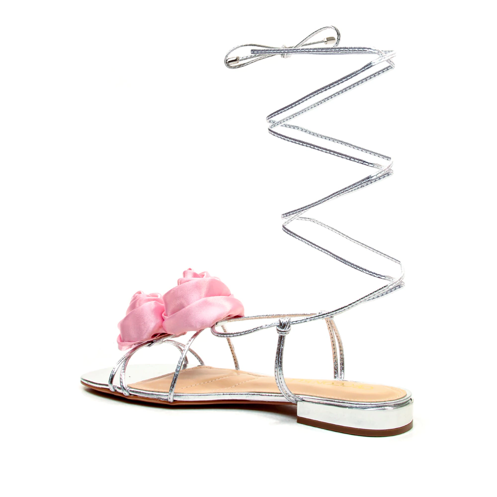 sandália rasteira cecconello confeccionada em couro, com tiras delicadas que se cruzam sobre o pé e sobem pelo tornozelo, finalizando em uma elegante amarração alta. como toque romântico, o modelo é adornado com delicadas rosas de cetim, acrescentando feminilidade ao design. o salto bloco baixo proporciona conforto sem perder a sofisticação, tornando essa sandália perfeita para ocasiões casuais com um toque de charme.
