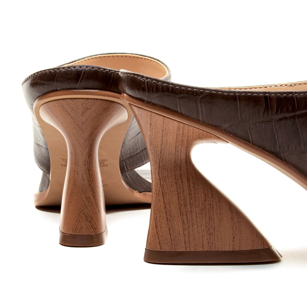 elegante e ousado, este tamanco em couro com textura croco traz sofisticação à esta clássica modelagem. o bico quadrado e a construção minimalista são equilibrados pelo salto médio escultural, com acabamento amadeirado que reforça o apelo contemporâneo da peça. a palmilha acolchoada oferece conforto, enquanto o design com tiras em v e dedo de fora adiciona leveza e modernidade. ideal para produções versáteis, do dia à noite.