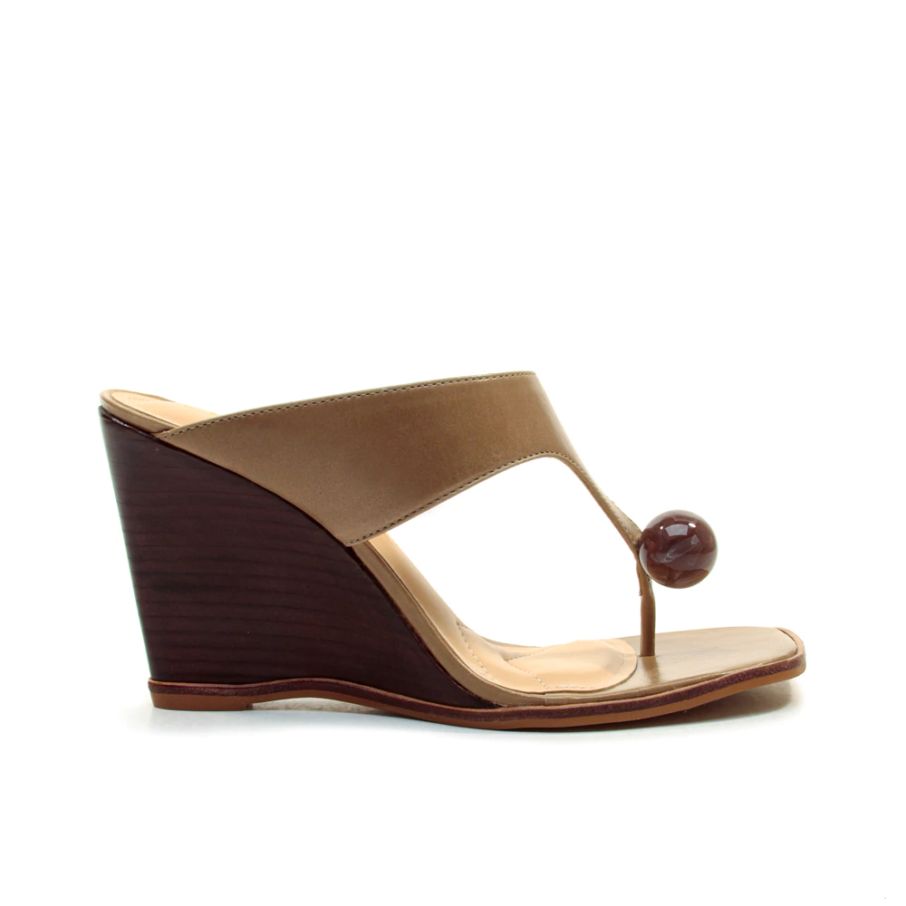 com design arquitetônico e sofisticado, esta sandália anabela em couro traz uma elegância moderna e descomplicada. o cabedal em corte amplo e curvilíneo envolve o pé com leveza, enquanto a charmosa esfera resinada no centro confere um toque escultural e contemporâneo. a palmilha acolchoada garante conforto, e o salto anabela de efeito amadeirado oferece estabilidade com estilo. um modelo ideal para compor looks urbanos com personalidade, do dia à noite.