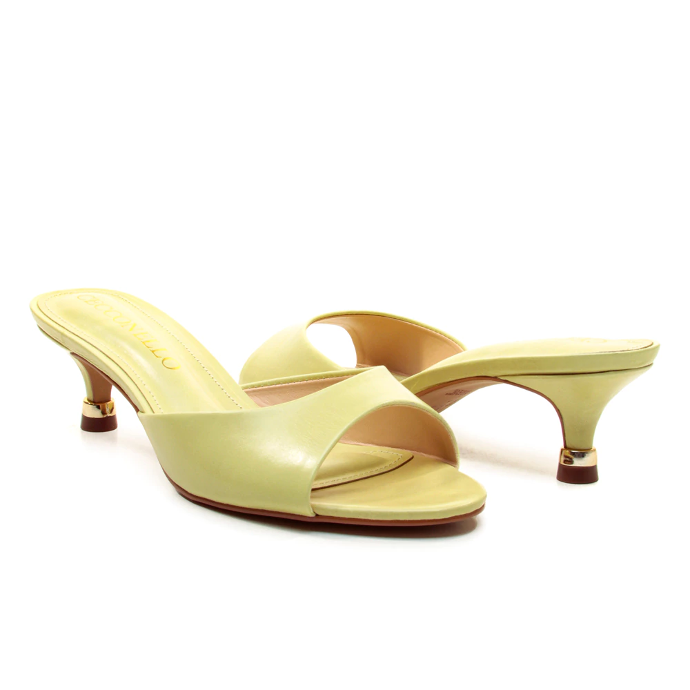 elegante e atemporal, esta mule em couro exibe um design minimalista com bico redondo e recorte amplo no cabedal, garantindo sofisticação com conforto. o salto baixo fino recebe um toque especial com aplicação de detalhe metalizado na base, conferindo um acabamento moderno e luxuoso. ideal para compor looks refinados que transitam com facilidade entre o dia e a noite.